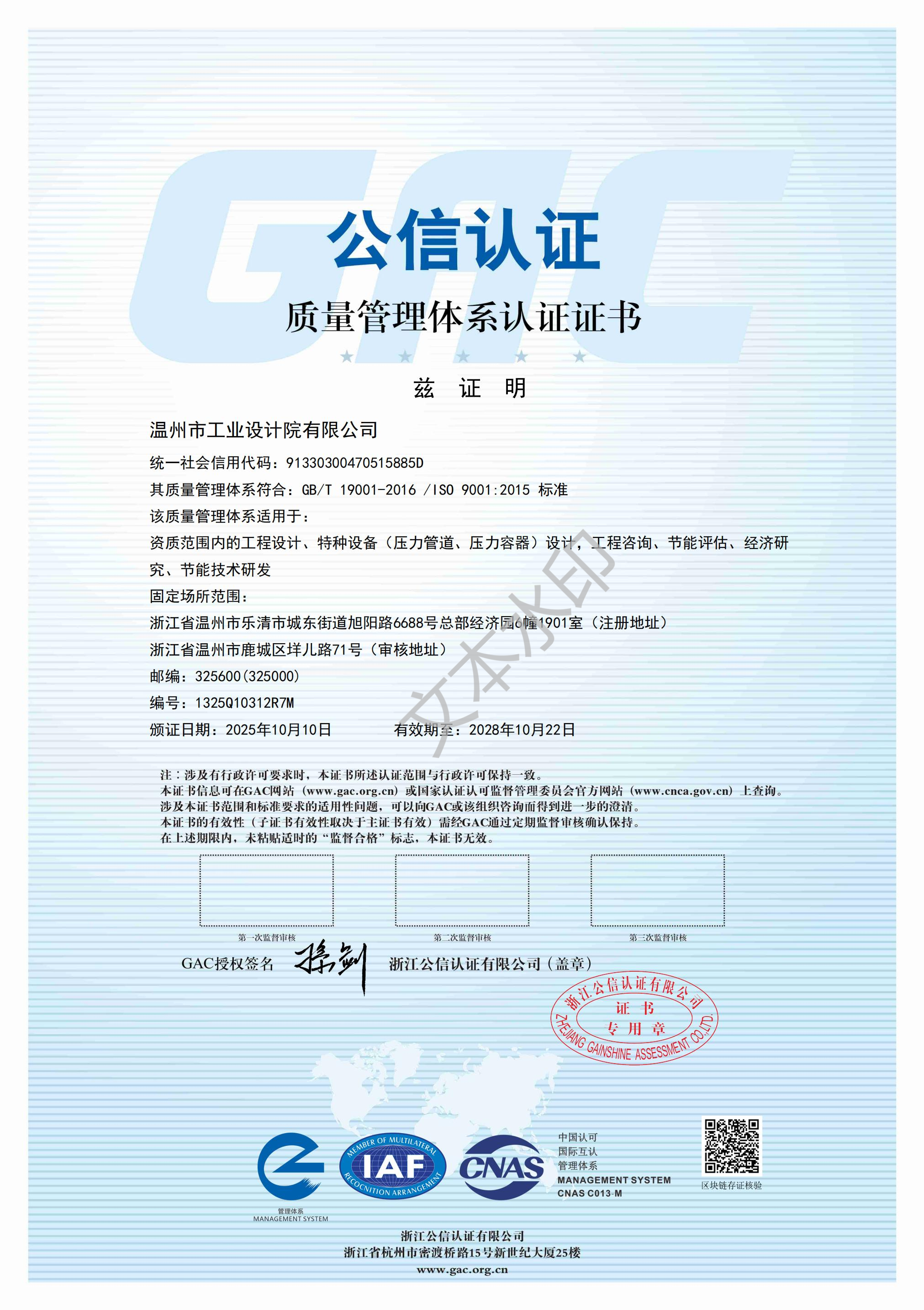 質(zhì)量管理體系證書